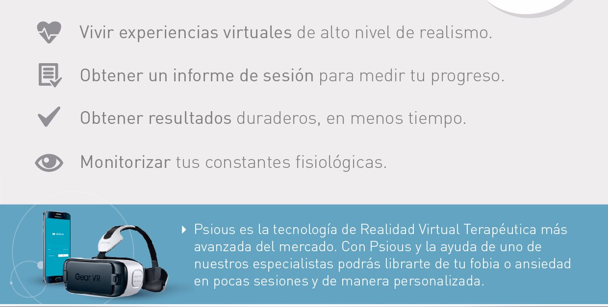 Validada por más de 25 años de estudios científicos. Los entornos virtuales permiten no sólo la reproducción de configuraciones estimulares relevantes para terapias de salud mental, sino además la posibilidad de manipular determinadas variables con la finalidad de adaptar cada práctica a las características del paciente. Esta tecnología proporciona la opción de evaluar e intervenir “dentro” de una situación específica, sin necesidad de salir de consulta; se trata de una herramienta que, bien usada, facilitará la aplicación de protocolos de evaluación e intervención psicológica.